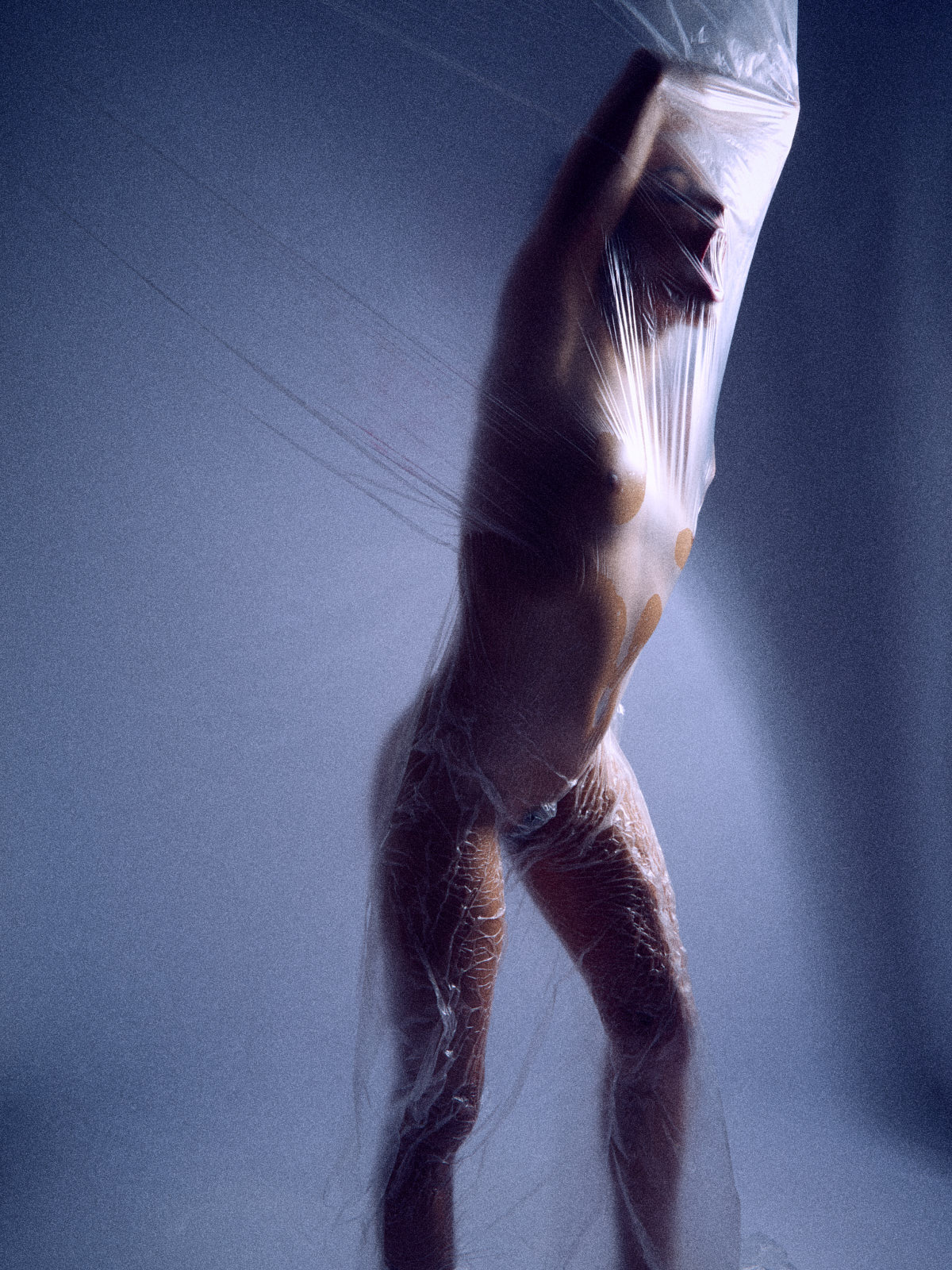 Silent Scream presents Spanish nude model Joy Lamore in dramatic artistic photography by Barcelona-based Cinaed Dane. Published Playboy Spain model appears behind partly see-through plastic barrier pressing nude body in strong poses and intense facial expressions, creating distorted artistic imagery. This Madrid-based model's powerful performance enhanced through Barcelona studio dark metallic-grey color grading with film grain texture creating moody contemporary aesthetic. Photographer Cinaed Dane transforms Spanish model's physical intensity into sophisticated erotic art through plastic barrier distortion and post-production editing. The dark grey-toned treatment adds emotional weight while grain texture creates artistic film quality. This series exemplifies Joy Lamore's expressive range in contemporary nude photography where physical intensity, barriers, and dramatic editing combine creating powerful sophisticated artistic erotic imagery.